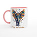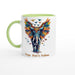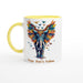 This beautiful ceramic mug is perfect for any event of the day. Your morning coffee, a hot chocolate, or any other hot beverage you enjoy. The mug is glossy white with a colored rim, inside, and handle. The prints come out beautifully and vividly on it. The print retains its quality and luster when used in both microwaves and the dishwasher.