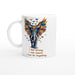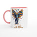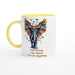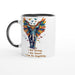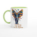 This beautiful ceramic mug is perfect for any event of the day. Your morning coffee, a hot chocolate, or any other hot beverage you enjoy. The mug is glossy white with a colored rim, inside, and handle. The prints come out beautifully and vividly on it. The print retains its quality and luster when used in both microwaves and the dishwasher.